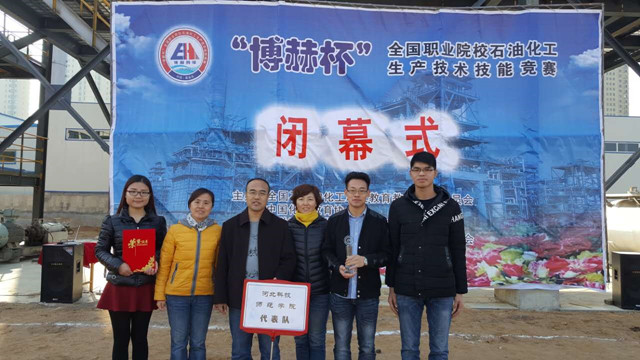2016年11月6日,全国化工行业“博赫杯”2016年技能大赛在秦皇岛落下帷幕。化工公司宋爱君、段志青老师及2013级应化专业张莹、付庭康、谢美金三名员工组成的参赛队伍在比赛中获得三等奖,宋爱君老师获得优秀指导教师荣誉称号。