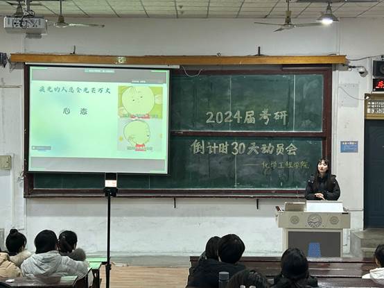 为做好2024届考研学子考前思想心理疏导、鼓舞动员工作,化工公司于2023年11月23日召开了考研倒计时30天冲刺动员大会。公司领导、专职辅导员、公司部分考研学子参加了活动。