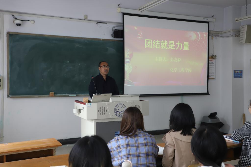 会上,党委书记彭友舜同志首先组织学习了习近平总书记给平山县西柏坡镇北庄村全体党员的回信。指出总书记的回信充分强调了团结的重要性,也体现了习近平总书记对河北的知之深、爱之切,要求与会人员要深刻领悟总书记回信的精神内涵。其次讲解了《团结就是力量》这首经典革命歌曲的创作背景及过程。指出1943年正值抗日战争相持阶段,敌后抗日根据地进入到最紧张、最残酷和最艰苦的时期,这首歌曲极大的鼓舞了全国人民团结起来抗击日本侵略者的决心和信心。第三,号召全院师生携起手来,在中国特色社会主义进入到新时代的今天,传承团结红色基因,开启奋斗新征程。