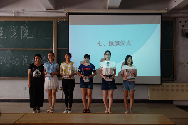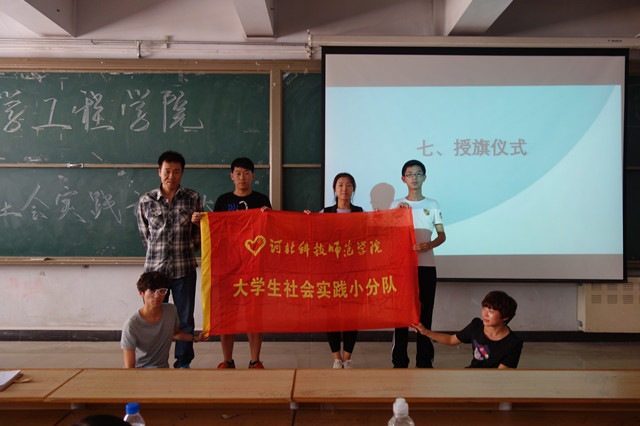 学工办主任刘一健老师为社会实践团队授旗